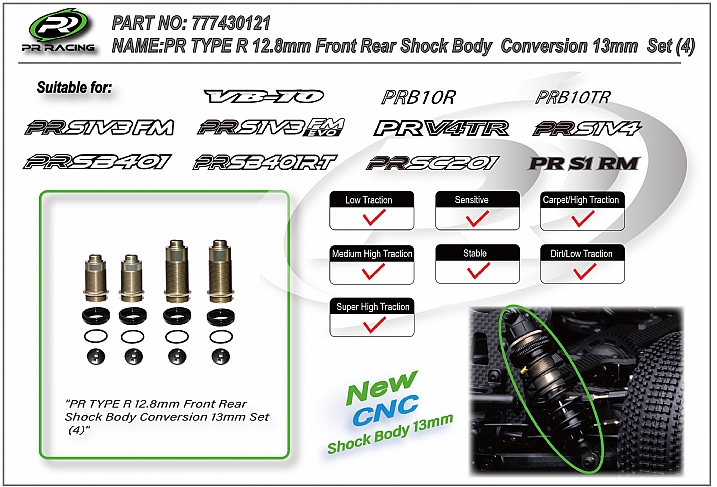 PR TYPE R 12.8mm Front Rear Shock Body Conversion 13mm Set (4)